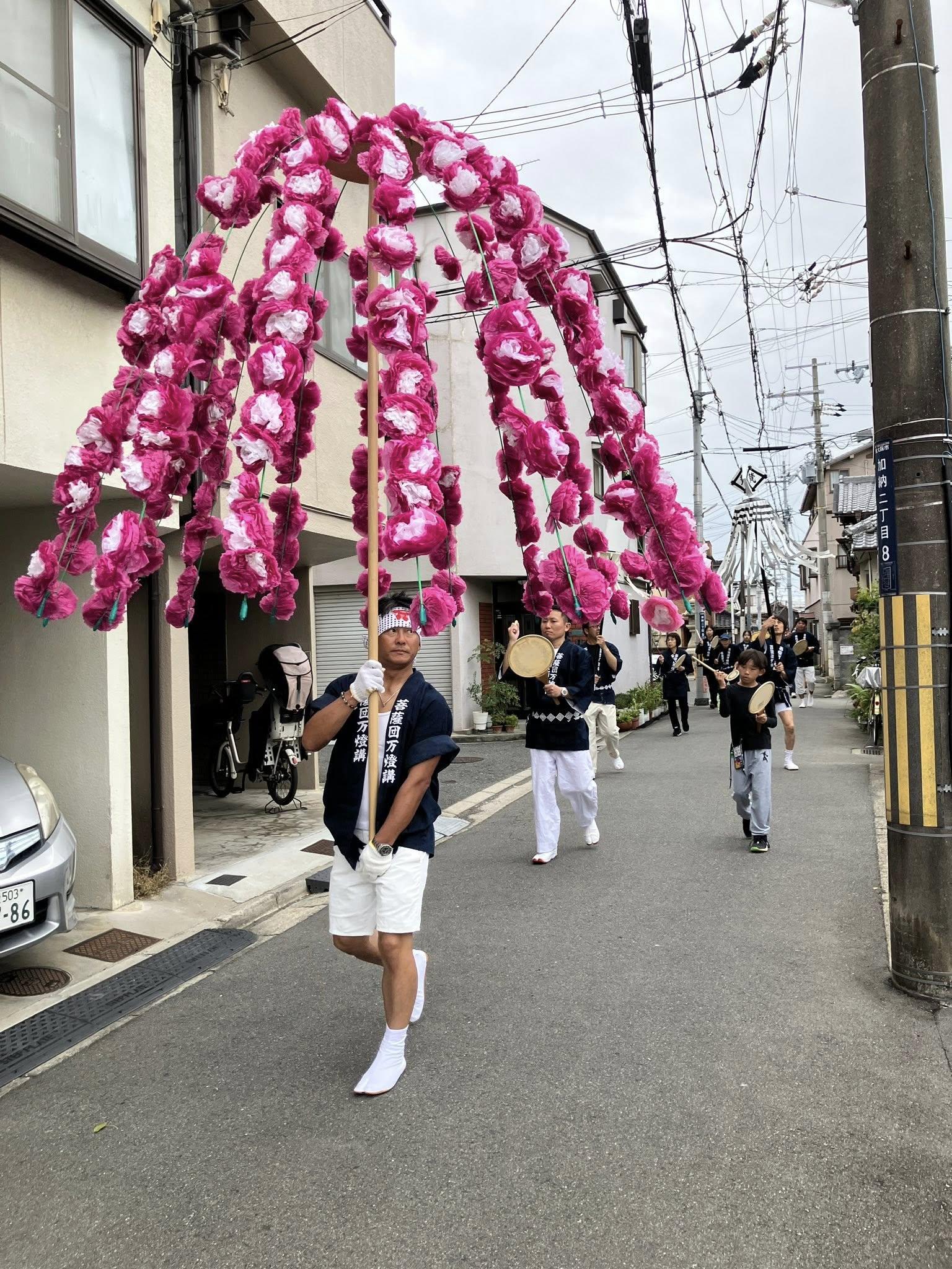 当山の御会式では、京田辺市・法華寺菩薩団の皆様による万灯・纏の練り歩きがあります。